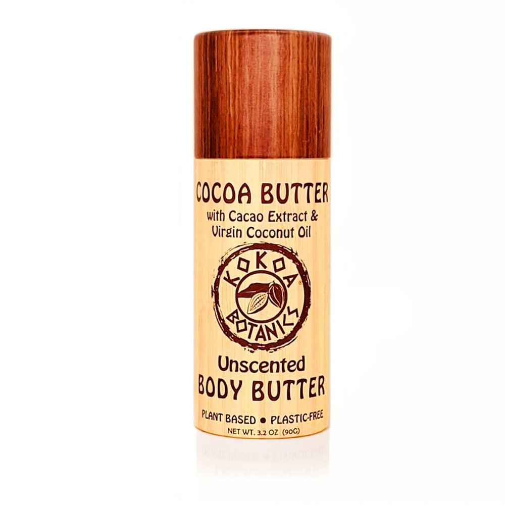 Cocoa Butter Lotion Bar with Virgin Coconut Oil – Unscented – Plastic-Free 3.2 oz by Kokoa Botanics